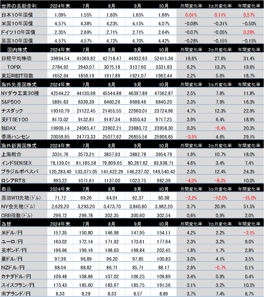 債券市場はトランプ関税の影響で物価が上がると思われた米国が、足元でそこまでインフレになっていないこともあり、概ね落ち着きを取り戻しています。為替市場では日本で高市政権が誕生したことで、「金融緩和+財政拡張」が意識され円安が進捗しました。